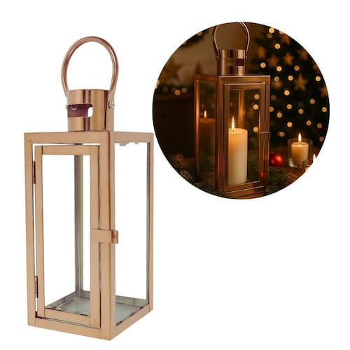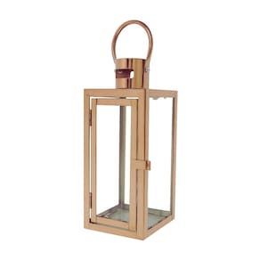 Lanterna Decorativa Inox Rosê Metalizado com Vidro 25cm x 10cm