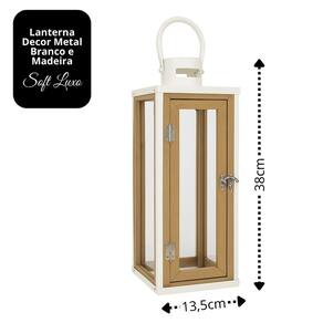 Lanterna Decor Metal Branco e Madeira com Vidro 38cm x 13cm