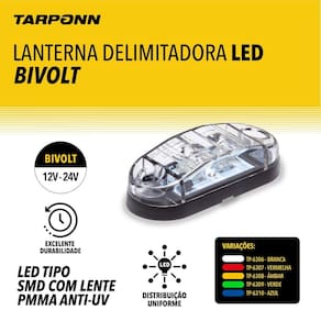 Procura por uma iluminação eficiente e durável A lanterna delimitadora led da tarponn é feita de um material de alta qualidade que oferece maior durabilidade, tamanho compacto e acabamento impecável. Além de ser resistente a vibrações e calor, possui grau de proteção ip 65 resistente a água.Características: bivolt Alto brilho Alta durabilidade Resistente a água Distribuição uniforme da iluminação Fácil de adaptar Baixo consumo de energiaAplicação: caminhão baú, trailer, barcos, baú, carretas e ônibus.Ficha técnica: cor: verde encaixe: universal tensão: 12 a 24v equivalência: 3w lente: pmma anti-uv tipo de led: smd linha: standart grau de proteção de água: ip65 fluxo luminoso: 5 lúmens conteúdo embalagem: 01 lanterna delimitadoraMega gt - especialista em acessórios automotivos e utilidades na mega gt, somos especialistas em acessórios automotivos e utilidades. Buscamos sempre oferecer a melhor opção com preço justo em todas as suas compras. Todos os produtos: envio em até 24 horas 3 meses de garantiaDúvidas frequentes: Possui garantia sim, os nossos produtos lanterna lateral possuem garantia de 3 meses. A sua satisfação é a nossa prioridade.Imagens meramente ilustrativas
