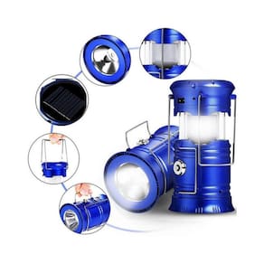 Lanterna E Lampião Solar Recarregável Camping Barraca Azul