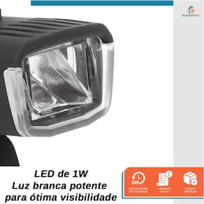 Pedale com segurança e visão impecável em qualquer ambiente com a Lanterna Frontal Starfer. Seu LED de 1W oferece luz branca potente para iluminar seu caminho, enquanto as 3 funções de luminosidade (luz forte, média e pisca) se adaptam às suas necessidades.