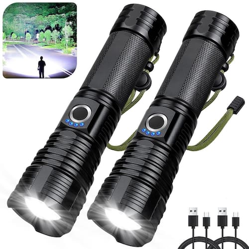 Lanterna recarregável, 2 pacotes de 990.000 lúmens de alto lúmens, lanterna LED super brilhante, 5 modos de luz potente à prova d'água