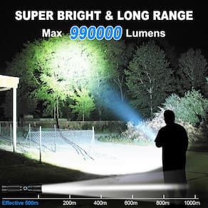 - [Lanterna super brilhante de 990000 lúmens] Pacote com 2 lanternas recarregáveis de 990000 lúmens GDPLUS equipadas com pavio de LED atualizado, luzes até 30 vezes mais brilhantes do que lanternas LED comuns, ilumina facilmente um espaço de 200 ? ou distância de 990 metros, garante que você possa ver longe. As várias necessidades de iluminação desta lanterna de alta potência podem ser atendidas, como acampamento, caminhada e emergência.