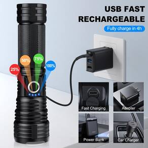- Recarregável por USB | Vários métodos de carregamento: a lanterna portátil tem uma porta de entrada USB rápida e é adequada para bases de carregamento, carregador de carro ou carregador portátil, o que aumenta a velocidade de carregamento em 30% e carrega totalmente apenas 4 horas.