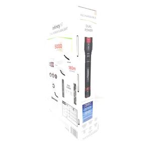 Infinity X1 A lanterna de potência dupla recarregável de 5000 lúmens da é alimentada pela bateria recarregável incluída ou baterias de células secas. Esta lanterna potente embala até 6,5 horas de luz ininterrupta a cada carga. A bateria recarregável permite que você carregue seus outros dispositivos diretamente da porta USB. Com 3 modos de iluminação para escolher, girar para focar a largura do feixe, uma classificação IPX5 à prova d'água e um teste de queda de 1 metro, você pode levá-lo com você em qualquer projeto ou aventura para iluminar o caminho.