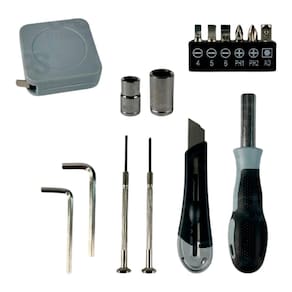 Kit de Ferramentas Com Luminária 15 Peças Eletromex EL-1705 Caixa de ferramentas com 15 peças e luz de LED. - Material de qualidade e durabilidade - Pode ser para uso pessoal ou profissional - Acompanha 2 chaves hexagonais, punho da chave de fenda, 6 bits de chave de fenda, 2 cabeças de soquete, fita métrica, estilete, 2 chaves de fenda de precisão - 2 modos de iluminação - Necessita de 3 pilhas AA não inclusas Tamanho: 25 x 9,5 cm Marca: Não Informado
