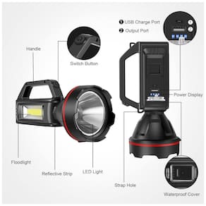 Bateria de grande capacidade O holofote portátil está equipado com uma bateria de grande capacidade atualizada, mais durável do que um item similar. O carregamento por 2 horas suporta 8 16 horas de trabalho. 4 modos diferentes O holofote de alto lúmen possui quatro modos de luz alto, baixo, estroboscópio e holofote. Forneça iluminação de longa distância, a distância de radiação pode exceder 500 metros, 1640 pés. Saída USB e exibição de energia A lanterna recarregável possui uma porta de saída e exibição de energia. Potência restante em um piscar de olhos. Estojo estanque no exterior para uma utilização normal com mau tempo. Fácil de transportar Use com a alça de ombro, você pode carregar o holofote da maneira que quiser. Leve e confortável, liberte suas mãos. Ótimo para atividades ao ar livre Marca: Não Informado
