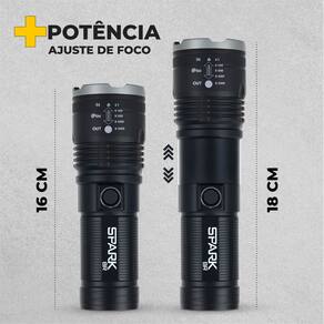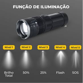 Especificações Técnicas: - Brilho: 2000 lumens; - Tipo de bateria: interna recarregável 8000mAh; - Autonomia: até 6 horas de uso contínuo; - Ajuste de foco: x1 a x2000; - Modos de iluminação: forte, média e suave; - Material: alumínio com alta durabilidade; - Cor da luz: branca; - Peso: 348g; - Dimensões: 18,5 cm (C) x 5,5 cm (L).