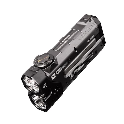 A lanterna SK05 Pro combina desempenho extremo com um design plano do tamanho da palma da mão. Possui holofote de 1.300 lúmens e holofote de 3.060 lúmens, que juntos produzem até 4.360 lúmens, e seu alcance máximo de feixe é de até 380 metros. Suficiente para todas as suas necessidades de iluminação. Esta lanterna compacta recarregável possui duas baterias que fornecem mais de 20 dias de vida útil da bateria, pode ser usada como duas baterias. A luz lateral multifuncional possui 7 modos e 8 cores. Anel externo de metal e botão central para controle com um dedo. Substituição rápida da bateria. A cauda magnética mantém a lanterna LED em uma superfície de metal, liberando suas mãos. Resistência a quedas de 1 metro e à prova d'água IP68 também podem se adaptar a vários ambientes agressivos ao ar livre. A Loop Gear maximizará suas necessidades!