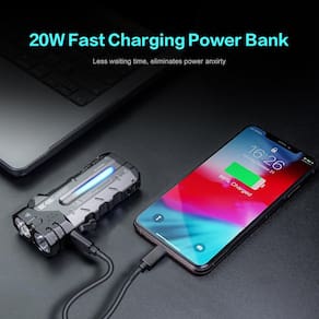 - [Baterias duplas e função de banco de potência] Equipada com duas baterias, esta lanterna EDC recarregável oferece até 20 dias de vida útil da bateria. Com potência de carregamento e descarga de 20W, funciona como um carregador portátil e é adequado para aviões e trens, garantindo energia confiável em movimento.