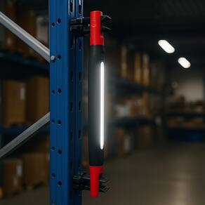 Lanterna de trabalho recarregável com LEDs COB, 4 modos de iluminação (branca forte, branca fraca, vermelha contínua, vermelha piscante), ímã potente, gancho retrátil, clip de suporte, ajuste de ângulo, visor digital de porcentagem da bateria, carregamento via USB tipo C.