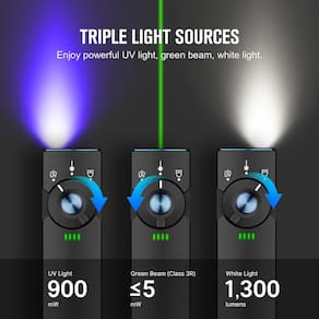 - [Funcionalidade três em um] Oferece um brilho máximo impressionante de 1300 lúmens para excelente iluminação. Arkfeld Pro combina luz branca, UV e feixe verde em uma única lanterna, oferecendo versatilidade para uma ampla variedade de aplicações