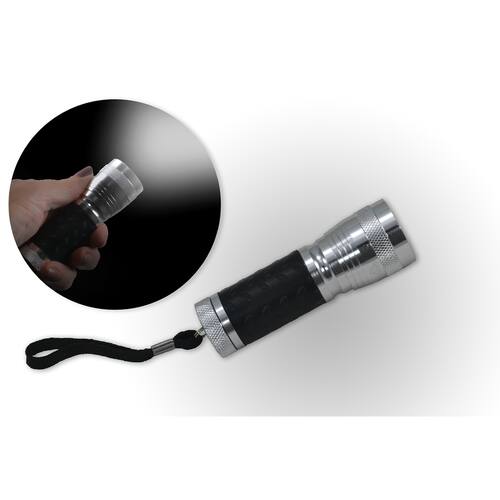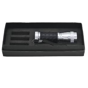 Feita em metal e emborrachado é própria para atividades externas e internas - útil para ter por perto durante quedas de energia. Com uma distância de feixe de luz de aproximadamente 30 metros. Pequena para caber em uma bolsa ou em um porta luvas.