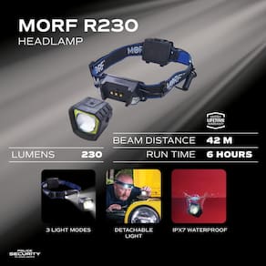 - Lanterna de cabeça versátil: a lanterna de cabeça Morf R230 é uma solução de iluminação versátil projetada para entusiastas de atividades ao ar livre, caçadores e profissionais de aplicação da lei.