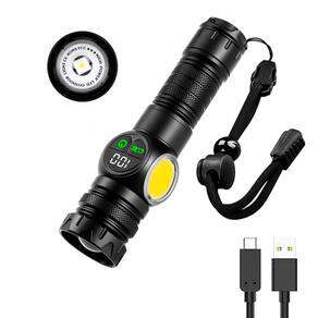 Especificações Técnicas: • Potência: 30W • Cor da luz: Branco frio (7000K) • Luminosidade: 800 lúmens • Vida útil: 60.000 horas • Material: Alumínio • Entrada: 5V • Bateria: 1x 18650 recarregável • Modos de iluminação LED: 5 • Modos de iluminação COB: 4 • Resistência à água: IP65