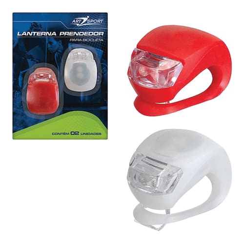 Descrição as lanternas para bicicleta são compostas por 2 Leds que exercem 03 funções diferentes: luz continua, pisca rápido e pisca lento. Possuem corpo em silicone, possibilitando serem acopladas facilmente na bicicleta. Sugestão de Uso: Banco, Guidão Resistente a água. Cada lanterna utiliza 02 Baterias já inclusas . Medidas: 4cm x 3cm Comp. x Larg Composição: Plástico, Metal e Silicone Ean: 7899658323394