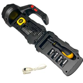 Iluminação potente com alcance de até 300 metros Diferentes modos de luz, incluindo alerta vermelho e azul piscante Bateria recarregável de longa duração com até 10 horas de uso Carregamento rápido via USB Tipo-C Acompanha um kit de ferramentas completo, ideal para emergências e reparos Informações Técnicas: