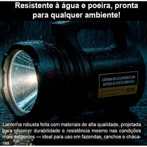 Transforme a escuridão em clareza com essa super lanterna profissional que vai além do comum. Com um potente LED laser de 300W e lente auxiliar circular, ela entrega um feixe aberto, forte e com alcance impressionante de até 2km. Ideal para uso em chácaras, fazendas, trilhas, acampamentos, pescarias ou até mesmo em situações de emergência.