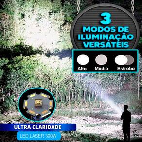 Pacote inclui: 01 Super Lanterna / Farolete LED Laser 300W 01 Alça Cordão 01 Fonte Bivolt