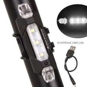 Lanterna traseira de BiKe Gold Sports Led Clear Vision 4 Modos de Funções com Cabo USB Recarregável A Prova de Água é um equipamento necessário para sua segurança seus leds são de ultima geração com um potência de alcance iLanterna Sinalizadora de BiKe Gold Sports Led Clear Branca 4 Modos Funções Cabo USB Recarregávelncrível. A Lanterna vem com dois anéis de borracha para ser cololada abaixo do Cilim da sua Bicicleta sua luz é Branca muitas pessoas colocom no guidão. Possui teste dos modos sem retirar da embalagem pressione o botão preto durante 3 segundos para ligar depois aperte rapidamente para ver os modos funcionando e para desligar mantenha o botão pressionado 3 segundos para desligar.