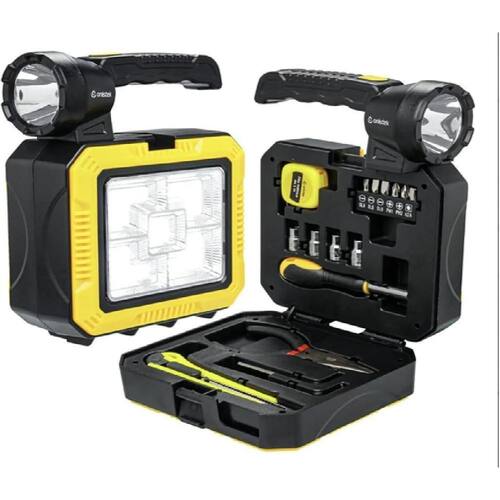 Lanterna Solar Led Com Caixa De Ferramenta Recarregável USB Lanterna de Camping com Maleta de Ferramenta é a companheira ideal para quem busca iluminação potente e praticidade em Acampamentos, Trilhas, Emergências, Sitio, Fazenda, Camping, Pesca Noturna. Além de oferecer luz de alta intensidade, ela vem acompanhada de uma maleta com ferramentas essenciais. Lanterna de LED potente - Iluminação forte e eficiente para ambientes externos. Modo SOS e Strobo - Ideal para sinalização de emergência e resgate. Bateria recarregável, solar ou uso com pilhas - Maior autonomia e praticidade. Design compacto e portátil - Fácil de carregar e armazenar no carro, mochila ou kit de emergência. Modo de iluminação ajustável - Luz frontal lanterna e Luz lateral de holofote. Kit completo de ferramentas - Para o dia a dia. Power Bank - Portas USB e Tipo-C compatível com diversos aparelhos. não carrega IOS . Especificações: - Potencia: 5W - Carregamento: de até 3 a 4 horas. - Bateria capaz de durar até mesmo 4 a 6 horas - Pode ser recarregado iluminação solar e cabo via USB. - Possui uma bateria de 2400mAh. - Potencia da fonte de luz 30W. - Fluxo luminoso máximo: 3000lm. - Modelo da bateria de lítio: 18650. - Alcance máximo: 100 à 200 metros. - Dimensões: 20 x 15 x 6cm. - Material: ABS. Conteúdo da embalagem: 01 Lanterna. 02 Chaves Allen. 04 Extensores. 01 Alicate de bico. 06 Bits de chaves. 01 Cabo de chave. 01 Estilete. 01 Fita métrica de 1metro. Perfeita para acampamentos, trilhas, pescarias e até mesmo emergências domésticas Marca: Não Informado