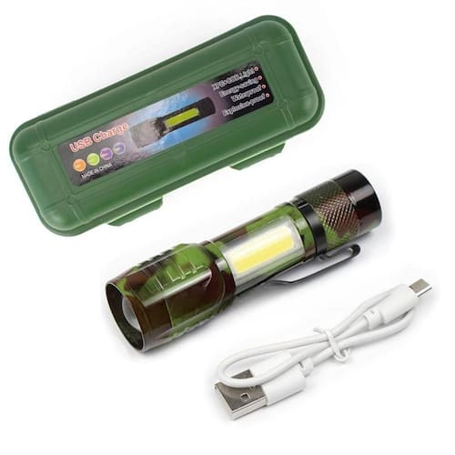 Lanterna Tatica Led Sabre Recarregavel Zoom Mesa 3 Em 1 Sos Trilha Usb Potente Mini De Bolso Militar Multiuso