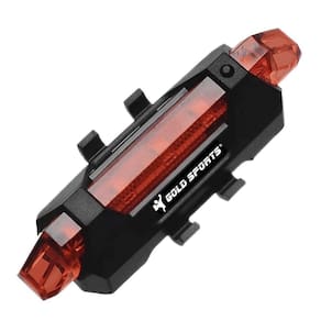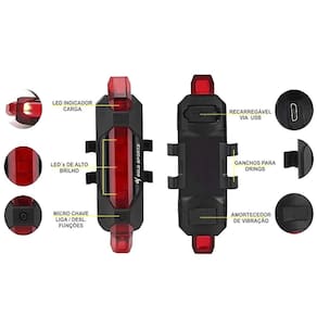 Lanterna traseira de BiKe Gold Sports Led Clear Vision 4 Modos de Funções com Cabo USB Recarregável A Prova de Água é um equipamento necessário para sua segurança seus leds são de ultima geração com um potência de alcance incrível. A Lanterna vem com dois anéis de borracha para ser cololada do abaixo Cilim da sua Bicicleta sua luz e vermelha. Possui teste dos modos sem retirar da embalagem pressione o botão preto durante 3 segundos para ligar depois aperte rapidamente para ver os modos funcionando e para desligar mantenha o botão pressionado 3 segundos para desligar.