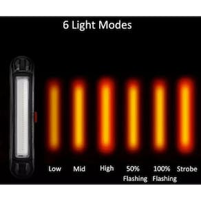 Características de produtos- tamanho: 15x80x23mm- peso: cerca de 64g- a54bk 7 modos: alta, média, baixa, 50% piscando, 100% piscando, estroboscópio- 30 micro-led, ultra brilhante para mantê-lo seguro- a tecnologia larga do diodo emissor de luz do feixe mantém você seguro com visibilidade de 180 - usb recarregável, sem baterias necessárias- ipx5 à prova d' água- fácil de instalar7 modos de luz Até 11h de uso Obs: a borracha de vedação da entrada mircro usb requer cuidado na hora do encaixe e desencaixe. Não recomendamos também a abertura desta vedação em dias de chuva fraca e chuva forte. Verificar antes de seu pedal se está bem encaixada e abertura com força acentuado, pode fazer com que a borracha caia.