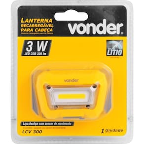 Ref. Fornecedor:8075003300marca:vonderconteúdo da embalagem:1 lanterna. Acompanha: 1 cabo usbdestaques e diferenciais:possui a prática possibilidade de ligar e desligar a luz com o simples movimento de passar a mão na frente da lanterna, desde que esta função esteja ativada. Dispõe ainda de 4 ajustes de posição, podendo chegar até 60 de inclinação para baixo, material de silicone no elástico para melhor fixação quando colocado em capacetes e maior conforto quando colocada diretamente na cabeça, cinta elástica ajustável, indicador de recarga luz vermelha: carregando/luz verde: carregado e entrada micro usb. É resistente a quedas ik07 e projeções de água ip65 . Bateria recarregável 3,7 v 1.500 mah - lítio. Tecnologia led cob, chip on board chip integrado na placa , é uma tecnologia mais moderna e recente de iluminação. Seu principal diferencial é a melhora no desempenho, pois proporciona uma luz multidirecional. Ou seja, a luminosidade é igual em todos os pontos. Isso ocorre devido à capacidade de alojar nove ou mais leds dentro de um único agrupamento. O led cob tem mais eficiência, já que trabalha apenas com dois contatos e um circuito. Ele costuma ter uma vida útil maior e, por conta da alta potência, é ideal para utilização externa, iluminações industriais e galpões.Aplicações e dicas de uso:indicada para iluminação em geral. Adaptável diretamente na cabeça ou capacete.Garantia legal: 90 dias + garantia contratual: 9 mesescorpretatensao5 v dc / 1 a cabo de carregamento micro usb características técnicas:quantidade de leds da lanterna: 1 led cob material da lanterna: plástico abs de alta resistência com revestimento emborrachado cor da lanterna: preta diâmetro da lente da lanterna: n/a comprimento total da lanterna: 45 mm tempo de carga: 2,5 horas autonomia aproximada: 5,5 h 1estágio / 2 h 2estágio fluxo luminoso lúmens : 100 lm 1 estágio / 300 lm 2 estágio alcance: n/a tensão v : 5 v dc / 1 a cabo de carregamento micro usb Ean: 7893946623340