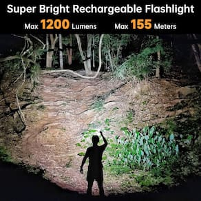 - Luz super brilhante: a lanterna pequena e potente usa 1 LED CRI alto 90 (o sol: 100 CRI). Saída de até 1200 lúmens (máx. ), distância do feixe de até 155 metros. O LED tem uma cor de luz branca natural com boa reprodução de cores. Você pode ver todos os detalhes mesmo na escuridão completa.