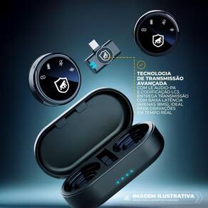 A praticidade do estojo de carregamento portátil é outro destaque. Além de armazenar os dois microfones e o receptor de forma segura, ele recarrega os dispositivos rapidamente, oferecendo autonomia suficiente para gravações prolongadas. Cada microfone possui indicadores de status, permitindo monitorar facilmente o nível de bateria e a conectividade.