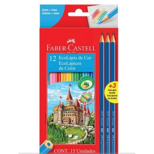 Lápis De Cor Longo 12 Cores +3 Eco Lápis - Faber Castell