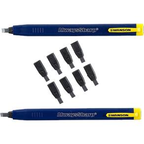Lápis de carpinteiro mecânico recarregável Swanson Tool Co CP216 AlwaysSharp, pacote com 2, com mais 8 pontas de grafite pretas de substituição
