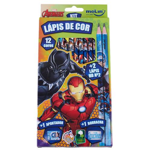 Adquira nossa variedade de Lápis de Cor 12 Cores com Apontador Borracha e 2 Lápis HB Marvel Vingadores da Molin para sua volta ás aulas aqui na Casa&Vídeo!