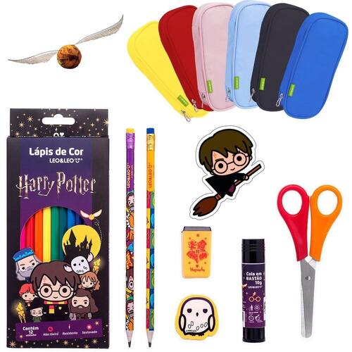 apresentamos o incrível kit escolar do harry potter, com todos os itens essenciais que você precisa para fazer parte deste mundo encantado. - lápis de cor encantados: dê vida às suas ilustrações mágicase e crie feitiços visuais com cores vibrantes e duradouras