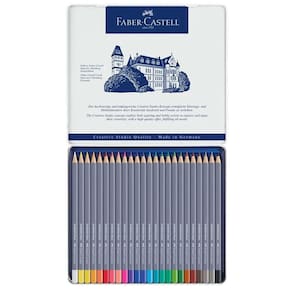 Os lápis aquareláveis Goldfaber possuem um sortimento de cores suaves e intensas, além de um excelente brilho, para técnicas secas ou úmidas. Todas as técnicas de desenho a seco dos lápis de cor podem ser usadas com os lápis de aquareláveis. Use um pincel molhado para fazer impressionantes pinturas. A mina totalmente hidrossolúvel do lápis de água Goldfaber Aqua foi produzido com a mais inovadora tecnologia de produção e impressiona com sua excelente resistência à luz.