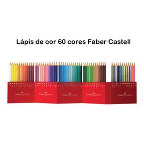 PRODUTO: Lápis de Cor Faber Castell 60 Cores EcoLápis autêntico Marca: Faber Castell Modelo: EcoLápis Referência: 120160G Código de barras: 7891360641711 Descrição: Produto autêntico da linha Ecolápis de Cor Faber Castell, sortimento exclusivo com 60 cores. Fidelidade entre a cor do verniz e a cor da mina que atende às necessidades das crianças. Estojo exclusivo, mais compacto: facilita o uso e a organização. Produzido com madeira 100% reflorestada de alta qualidade, certificada pelo FSC. Características: Formato sextavado, não rola na mesa. Na caixa vem com 6 cores metálicas e 3 cores neon. Fácil de apontar. Atóxico e seguro para o uso. Material: Madeira 100% reflorestada. Conteúdo da embalagem: 60 lápis de cor.