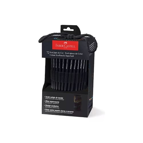 Características do Produto Estojo de tecido com 72 ecolapis de cor supersoft, sendo 6 neon e 6 metálicos, com compartimentos individuais para cada um. Com Mina supermacia exclusiva, garantindo o máximo de conforto ao pintar ,cores mais vivas e excelente cobertura, sobre papeis claros e escuros. Produzido com madeira 100% reflorestada, certificada pelo fsc®: Total respeito ao meio ambiente, design exclusivo. Especificações Lápis de Cor supersoft Embalagem: 1 estojo com 72 lápis Supersoft