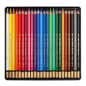 Conjunto Com 24 lápis Aquarelável Mondeluz. Lápis hexagonal com núcleo altamente pigmentado, garantindo cores vivas e intensas. Com um acabamento premium, a parte superior dos lápis é marcada em dourado, eles exalam qualidade e sofisticação.