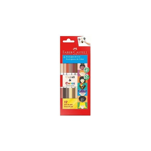 Lapis De Cor Bicolor Caras E Cores Tons De Pele 12 Coresn Lápis de Cor 12 Cores Bicolor Caras e Cores Faber Castell