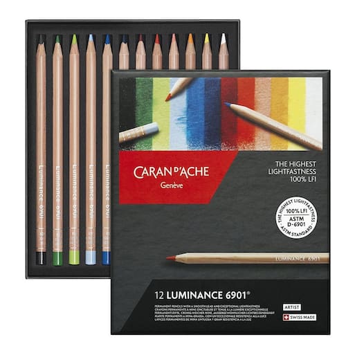 Lápis De Cor Caran D'Ache Luminance 12 Cores O lápis de Cor Luminance Caran D'Ache é uma combinação de suavidade com alta permanência e resistência a luz. Cada lápis foi formulado com a escolha perfeita de pigmentos puros, proporcionando forte cobertura e capacidade de mistura perfeita entre si. Esta característica do lápis Luminance permite uma variação de cores incomparável entre os lápis de cor permanentes. Produzido com madeira reflorestada. É o Lápis que melhor associa a resistência a luz á untuosidade de uma mina permanente. Fruto de mais de dois anos de pesquisas, cada cor foi formulada a partir de pigmentos selecionados pela sua pureza, intensidade e resistência aos raios UV. Ean: 7630002335621