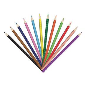 O lápis de cor tem corpo enriquecido com glitter e é apresentado em um estojo com 12 cores vivas e vibrantes.