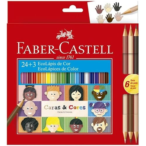 Características do produto:? 24 cores vibrantes + 3 tons de pele? Linha Caras & Cores – diversidade e inclusão? Madeira de reflorestamento (EcoLápis)? Traços macios e ótima cobertura? Mina resistente e fácil de apontar? Ideal para uso escolar e atividades criativas? Qualidade Faber-Castell Ean: 7891360656234