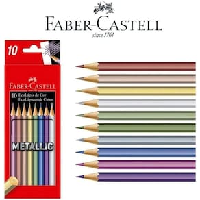 ?? Lápis de Cor EcoLápis Metallic 10 Cores – Faber-CastellAdicione um toque especial de brilho às suas criações com o Lápis de Cor EcoLápis Metallic da Faber-Castell! Com 10 cores metálicas sofisticadas, ele é perfeito para desenhos, ilustrações, lettering e detalhes decorativos que pedem destaque. Produzidos com madeira 100% reflorestada, os lápis oferecem traço macio, excelente cobertura e cores intensas com efeito metálico, garantindo um acabamento diferenciado em papéis claros e escuros. ? Diferenciais do produto:? 10 cores metálicas vibrantes? Excelente pigmentação e efeito brilhante? Escrita e coloração suaves? Madeira ecológica – sustentável e resistente? Qualidade e confiança da Faber-Castell