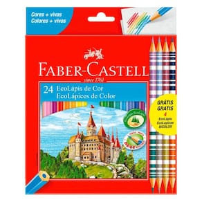 Lápis de cor faber-castell 24 cores com 4 lápis bicolor