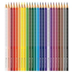 Crie com 24 cores! Lápis de Cor Grip FABER-CASTELL com formato ergonômico e esferas antideslizantes. Qualidade que inspira!