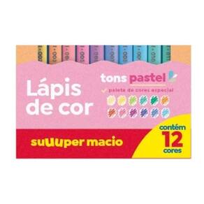 Lápis de cor 12 cores tons pastel mega soft color escrita super macia.