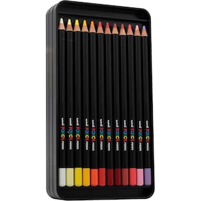 Nova linha de Lápis de cor Posca. Conjunto de trê estojos com 12 cores sobrepostos, totalizando 36 cores, brilhantes e facies de mesclar.