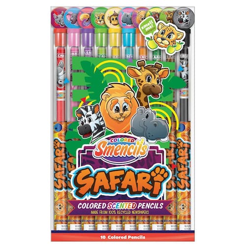Este conjunto inclui 10 lápis de cor gourmet perfumados que são feitos de jornal 100% reciclado e cada um armazenado individualmente em seu próprio tubo de frescor de plástico reciclável. Além disso, cada um é impresso com uma ilustração animal - Os Smencils coloridos Safari incluem 10 dos nossos lápis de cor perfumados gourmet feitos de jornais reciclados - Lápis de cor pré-afiados vibrantes são ideais para colorir livros, artes, artesanato, atividades, incentivos de ensino e muito mais - Os aromas gourmet duram dois anos para que seus Smencils cheirem bem sempre que você colorir, esboçar e desenhar - Trabalho escolar, trabalho doméstico, projetos de arte/artesanato serão ainda mais emocionantes com os Smencils coloridos e se tornarão um item essencial na sala de aula e em casa - Goma de bolha, cereja selvagem, maracujá, mirtilo, abacaxi, maçã suculenta, banana, manga, kiwi e amora