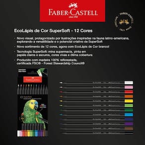 Lápis de Cor Supersoft 12 Cores – Faber-Castell (Novo Estojo) O Lápis de Cor Supersoft Faber-Castell é ideal para quem busca cores intensas e máxima maciez ao colorir. Sua mina supersoft garante traços extremamente suaves, com excelente cobertura e fácil mistura das cores. Este conjunto vem com novo estojo, prático e resistente, perfeito para organizar e transportar os lápis com segurança. Indicado tanto para uso escolar quanto para atividades artísticas e criativas. ? 12 cores vibrantes e intensas? Mina Supersoft – traço ultra macio? Ótima cobertura e mistura de cores? Novo estojo prático e resistente Ean: 7891360698456